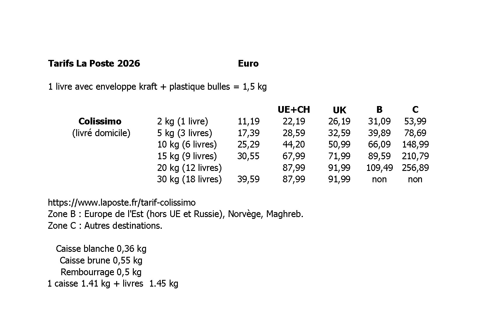 - CALCUL DES FRAIS DE PORT SELON TABLEAU CI-CONTRE